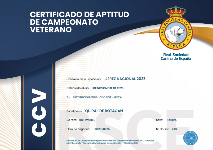 | 01/11/2025 | Nacional | Jerez de la Fra | Veterano (CV) | Rafael Malo | Exc 1 CCV MR SHERRY WINNER |