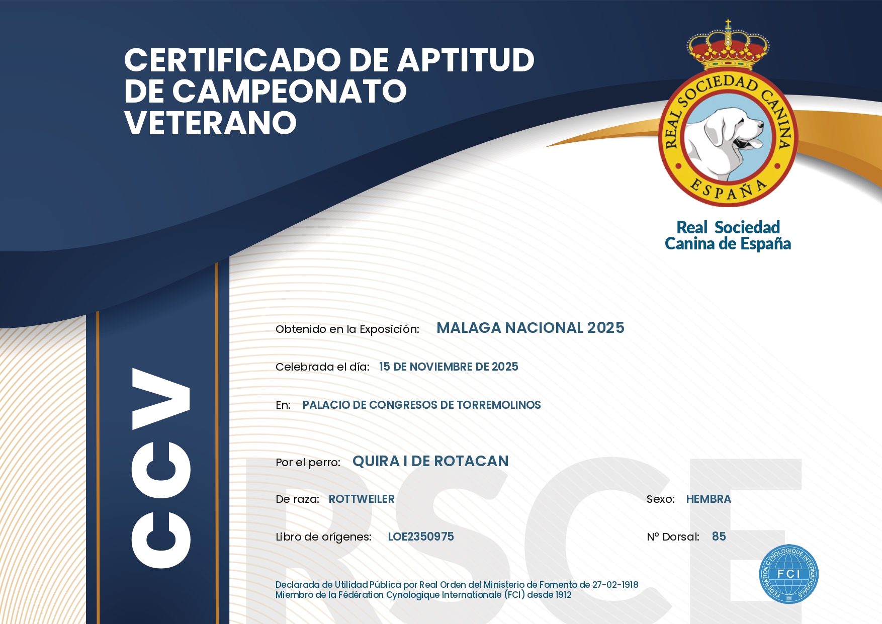 | 15/11/2025 | Nacional | Torremolinos | Veterano (CV) | Tatiana Pajares | Exc 1 CCV |