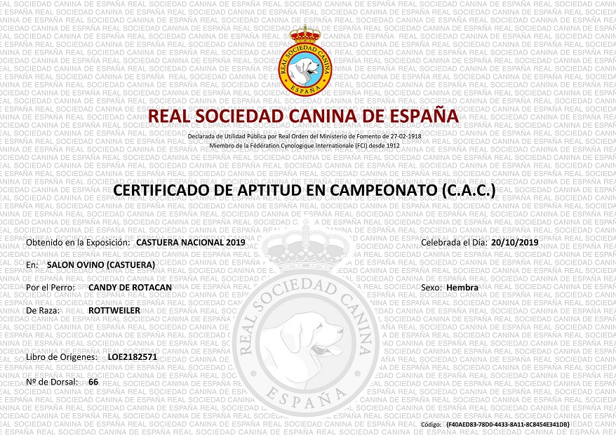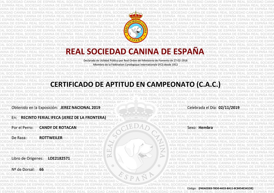 | 20/10/2019 | Nacional | Castuera | Abierta (A) | Viva Maria Soleckyj | Exc 1 CAC |