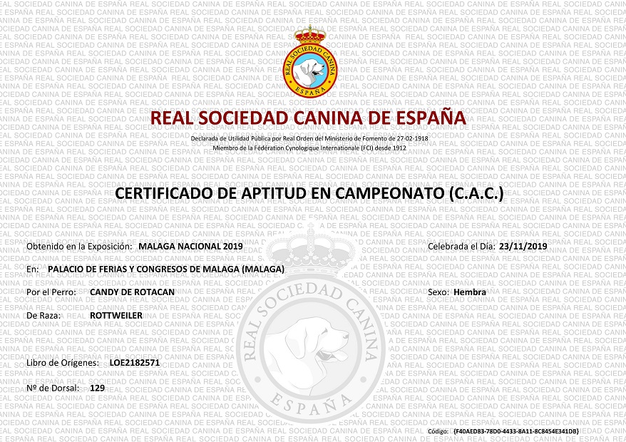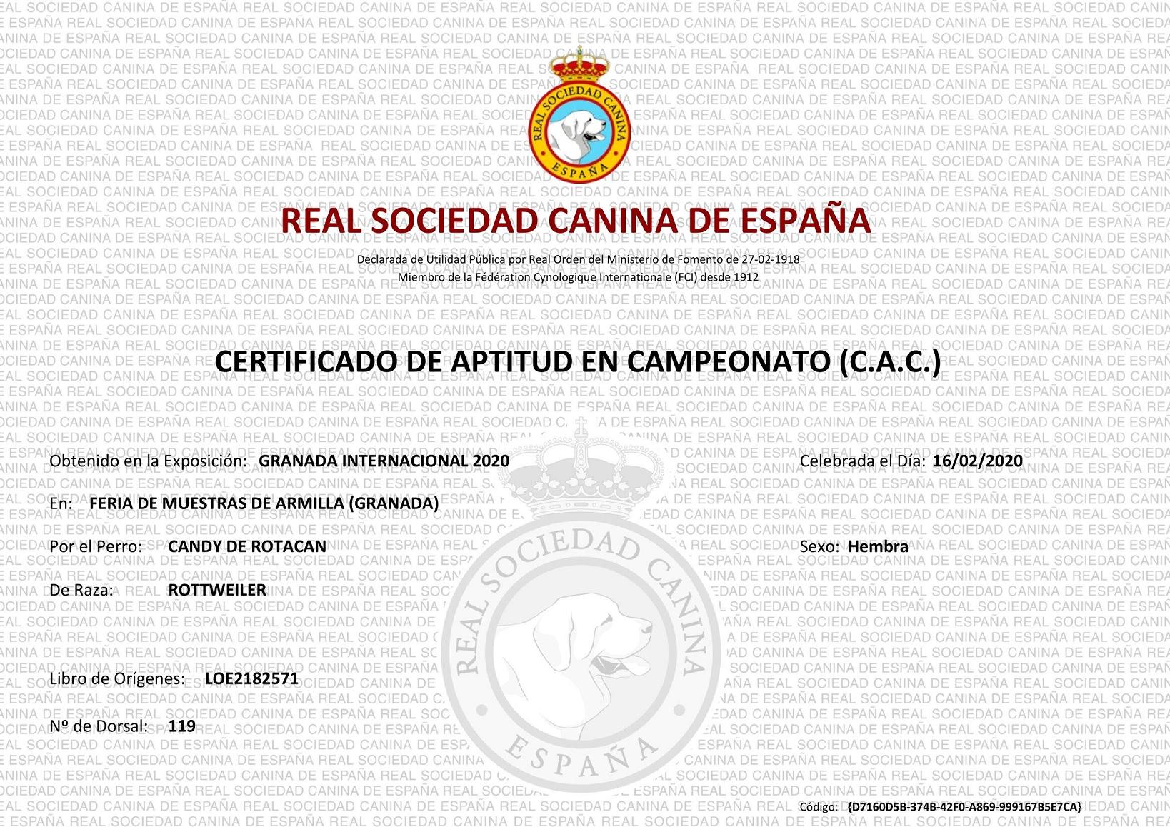 | 16/02/2020 | Internacional | Granada | Abierta (A) | Manuel Ramirez | Exc 1 CAC CACIB |